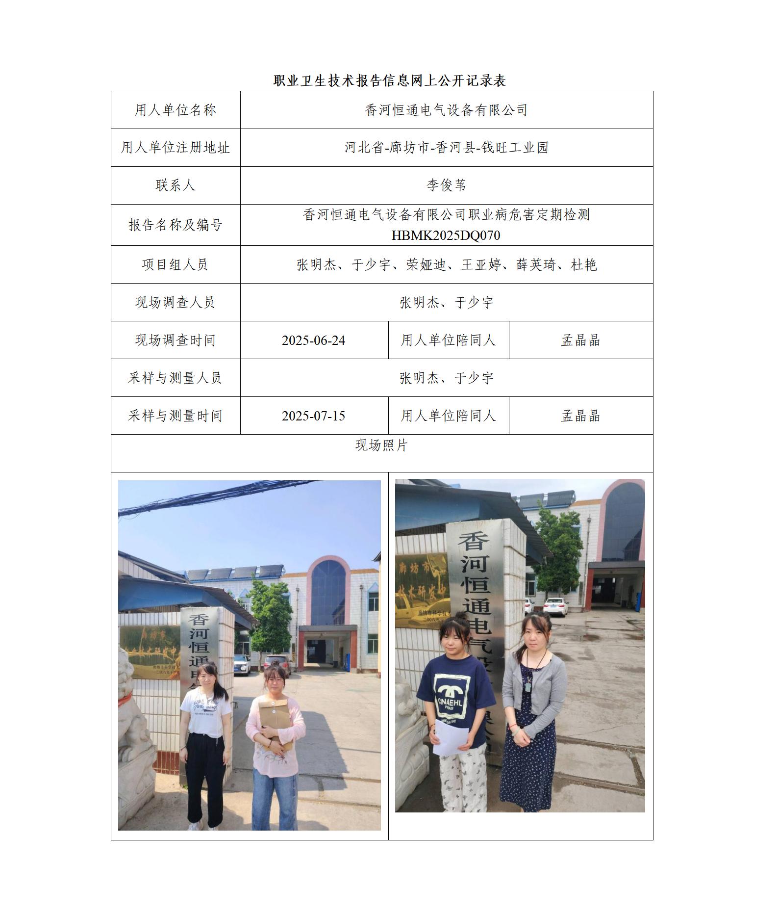 2025香河恒通電氣設(shè)備有限公司定期檢測