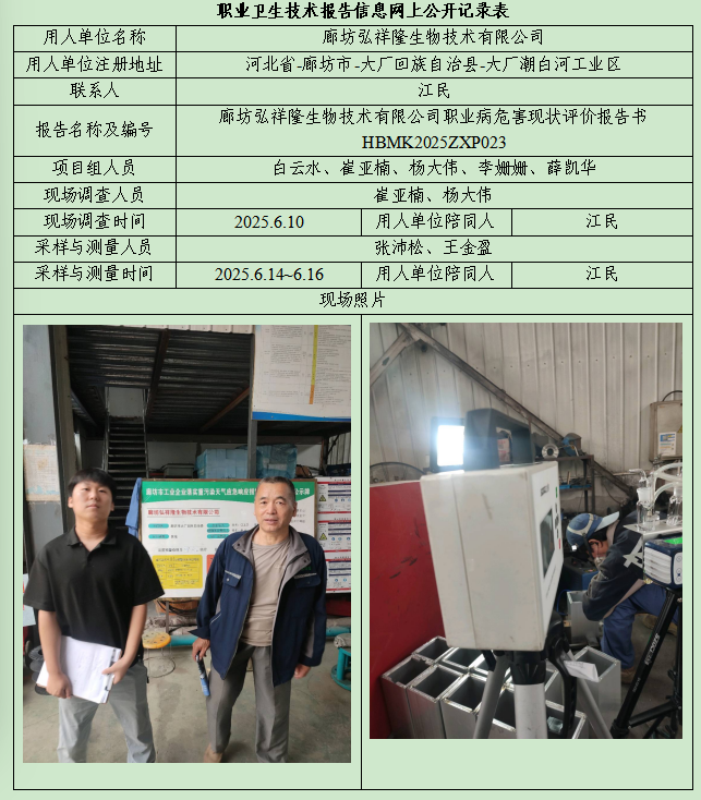 廊坊弘祥隆生物技術(shù)有限公司職業(yè)病危害現(xiàn)狀評(píng)價(jià)報(bào)告