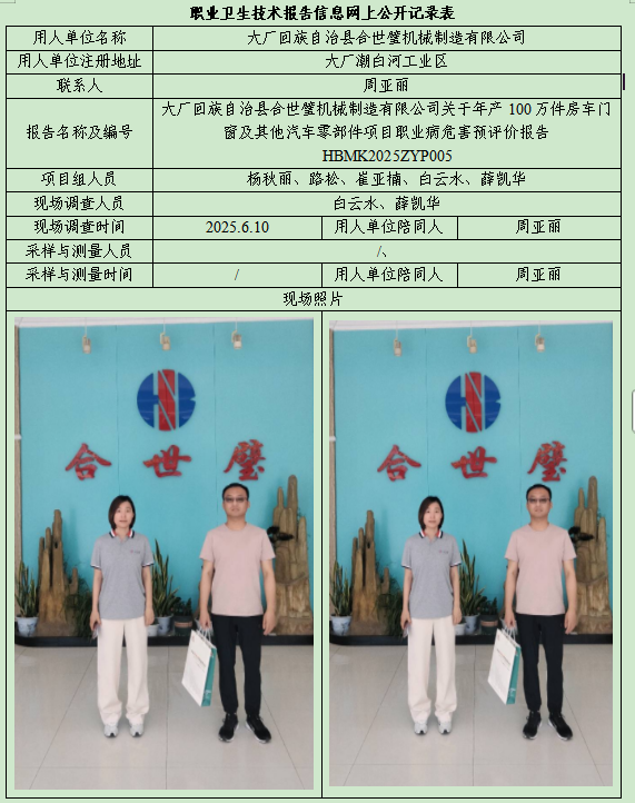 大廠回族自治縣合世璧機械制造有限公司關于年產(chǎn)100萬件房車門窗及其他汽車零