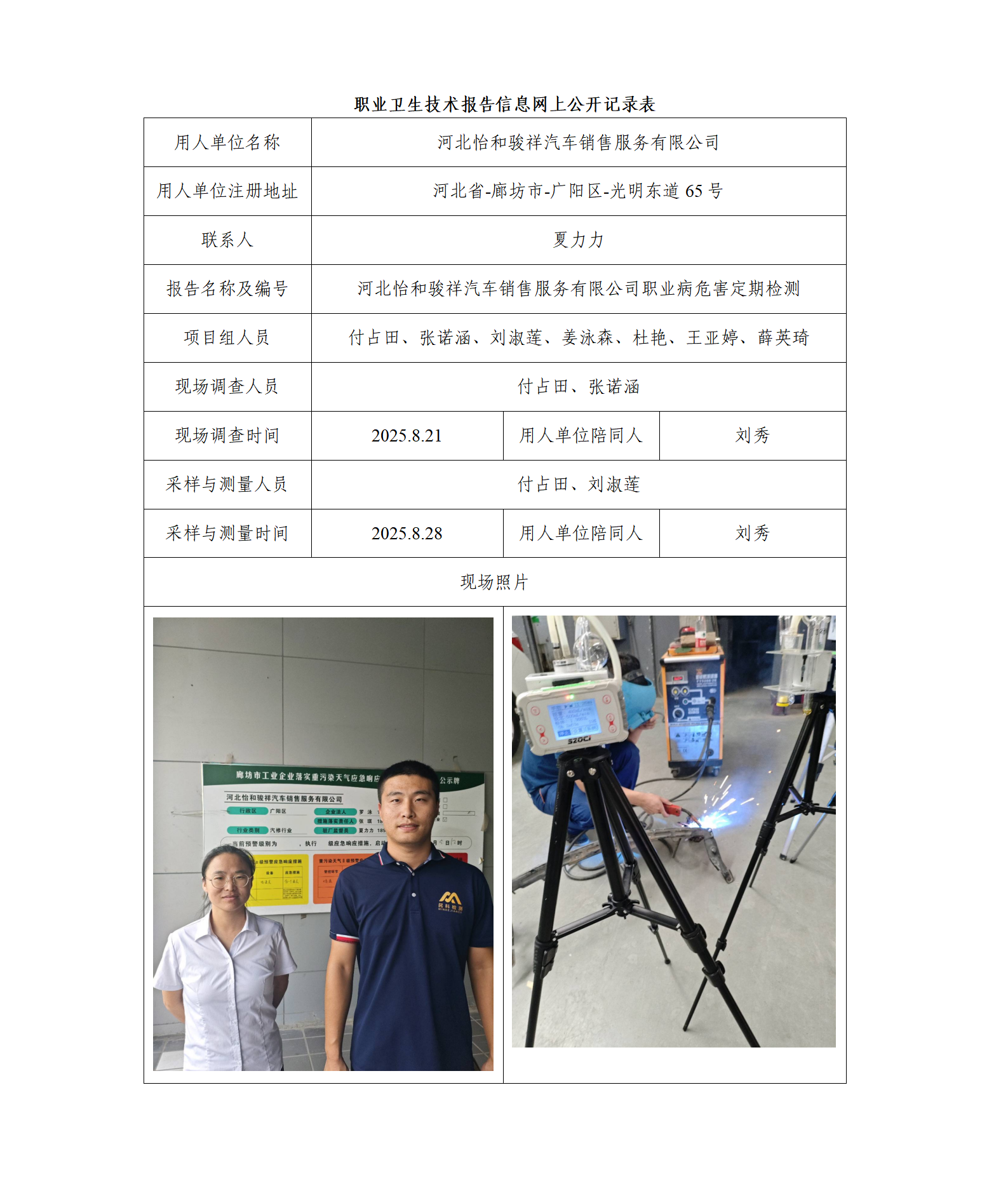 2025河北怡和駿祥汽車銷售服務(wù)有限公司定期檢測