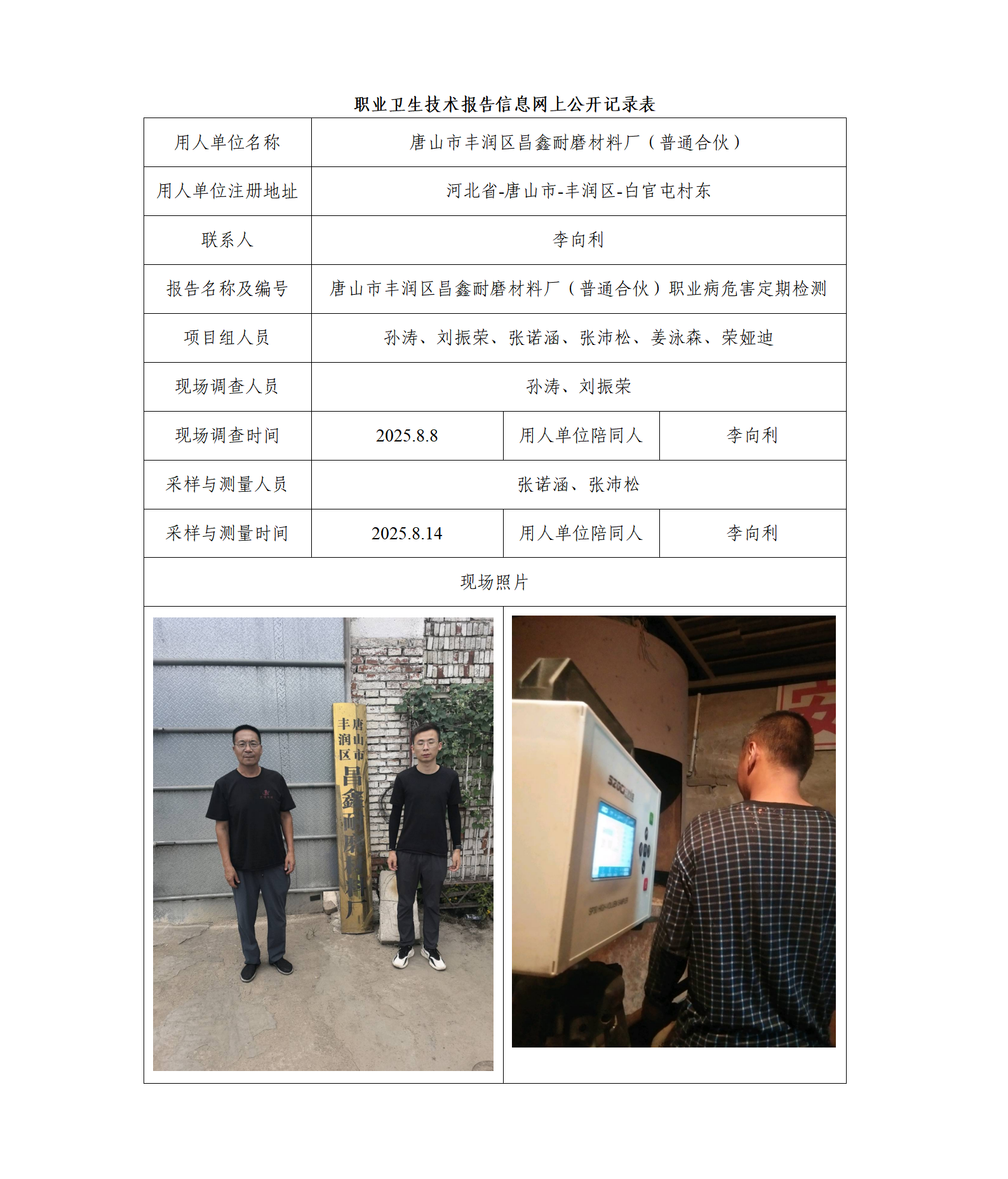 2025唐山市豐潤區(qū)昌鑫耐磨材料廠(普通合伙)定期檢測